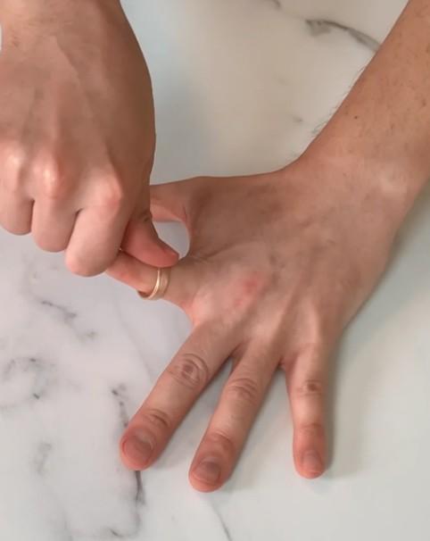 - 엄지손가락으로 다른 손의 손바닥과 손가락을 부드럽게 눌러줍니다.